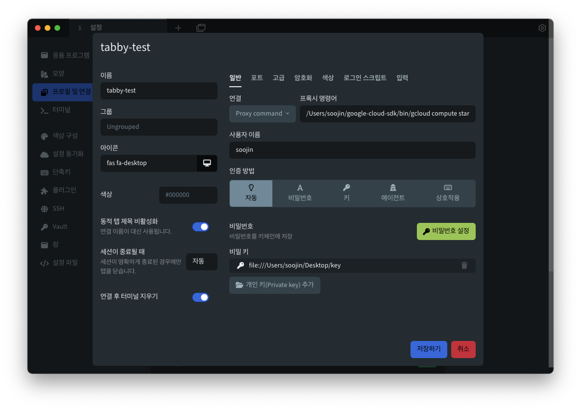 tabby로 GCP의 VM인스턴스에 IAP접속하는 방법에데 포스팅해보았습니다.