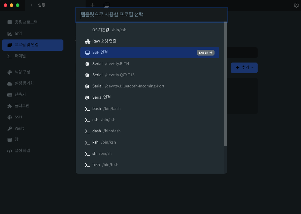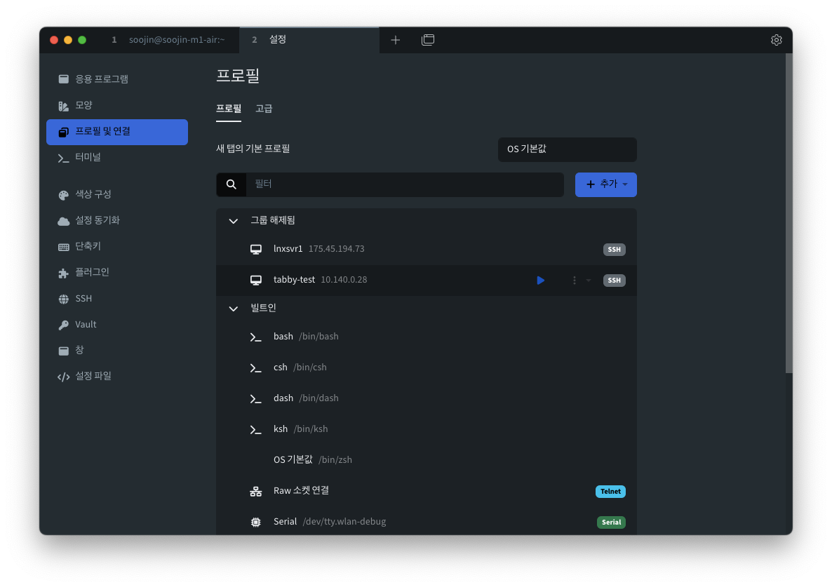 10. Tabby에서 [+새 프로필]을 클릭하여 새 프로필을 생성합니다.
