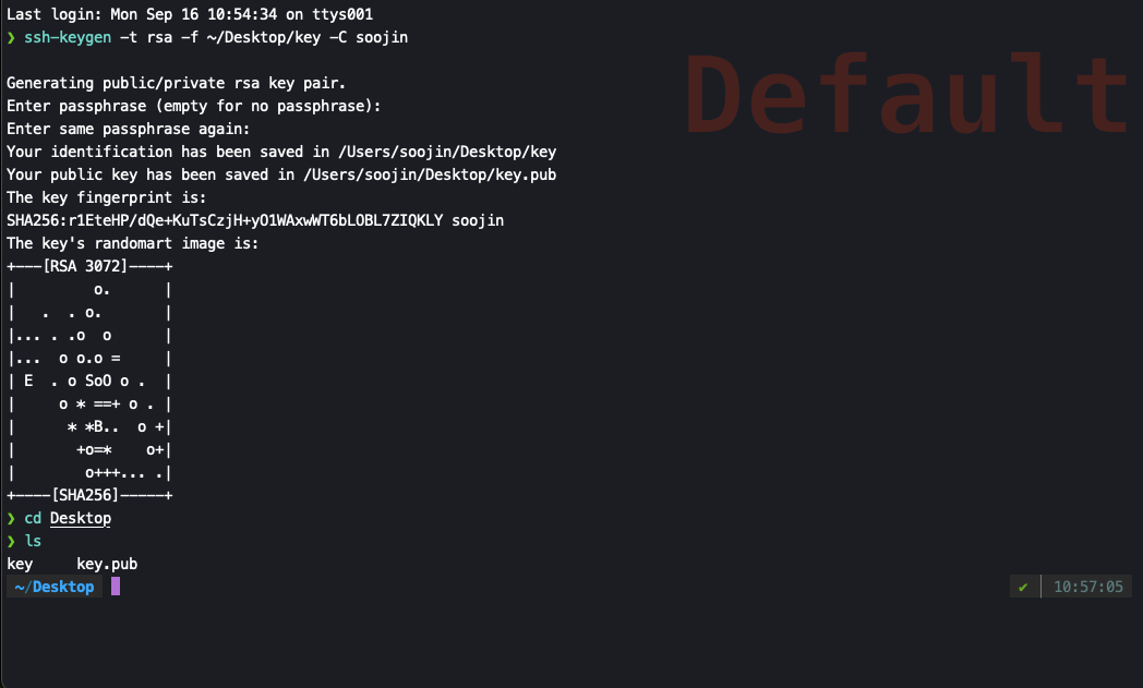 3. 원하는 경로(예시에서는 ~/Desktop)에 키 파일이 두개 생긴 것을 확인합니다.