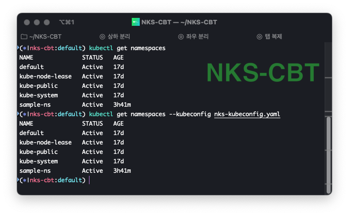 예시) nks용 별도 kubeconfig 파일을 사용하여 접속할 때