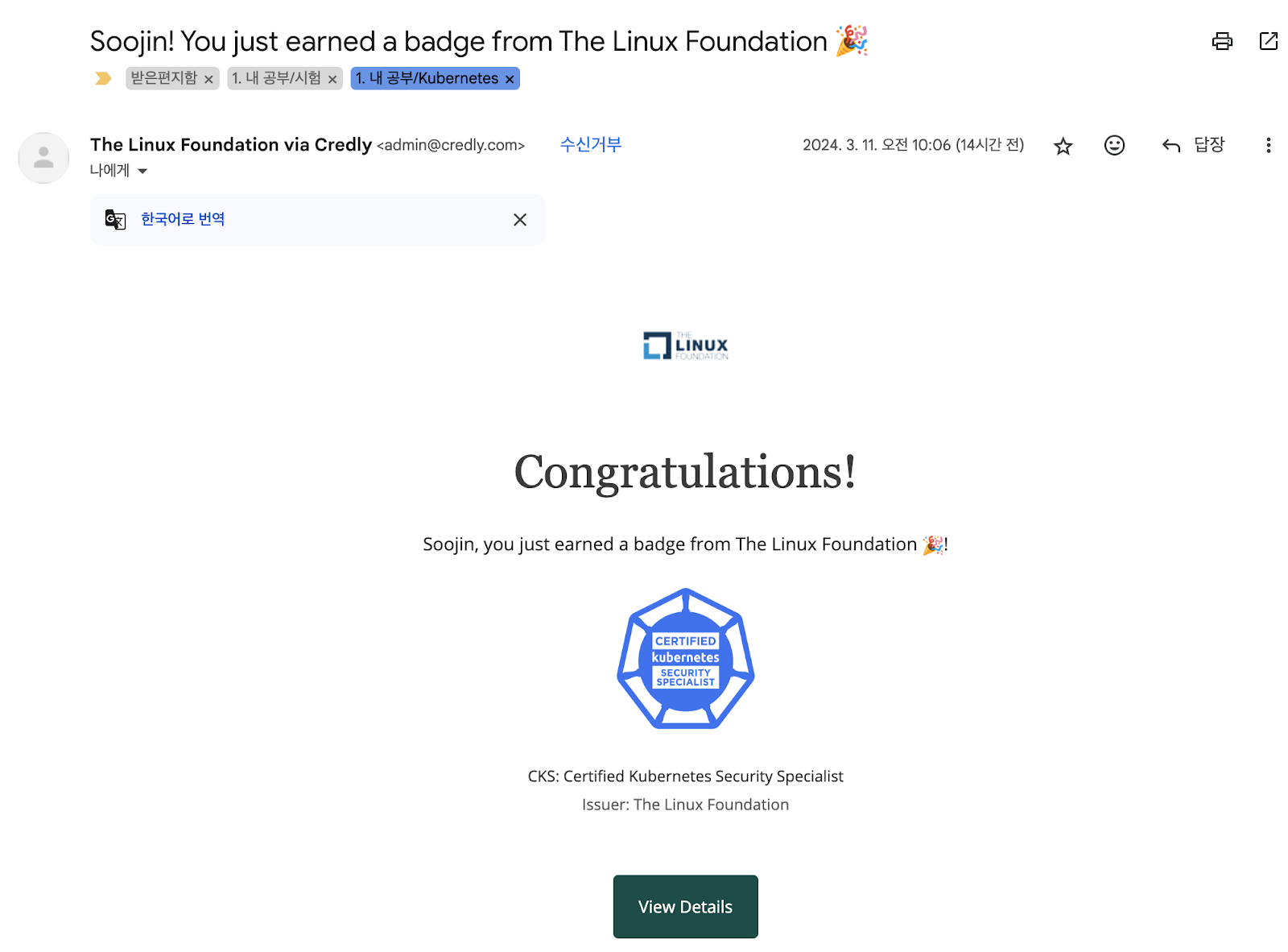 암튼 이것으로 쿠버네티스 자격증을 3개 다 모았습니다!
