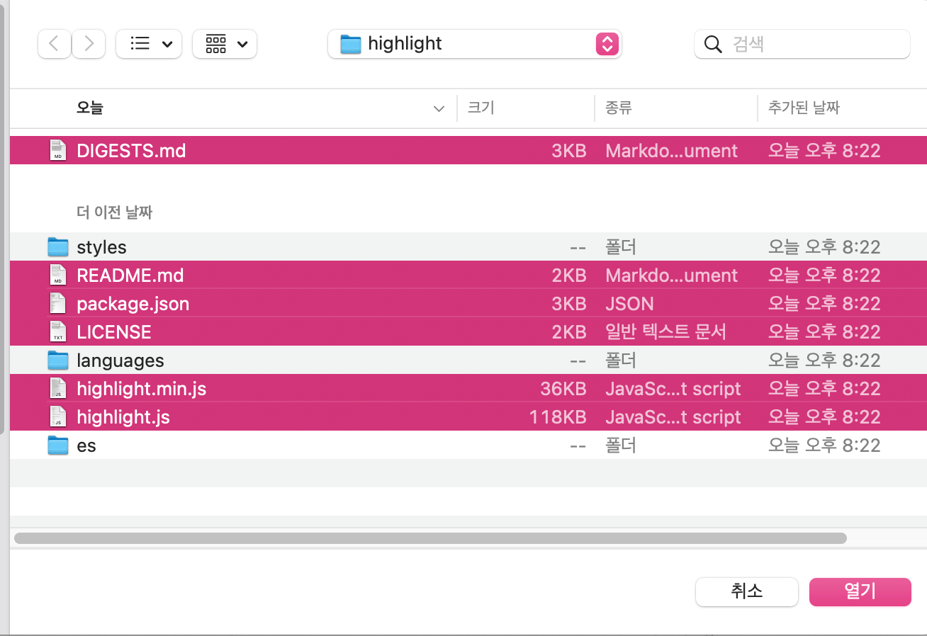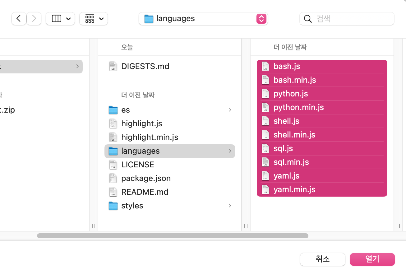 2-2에서 다운받은 highlightjs-line-numbers.js 파일도 업로드합니다.