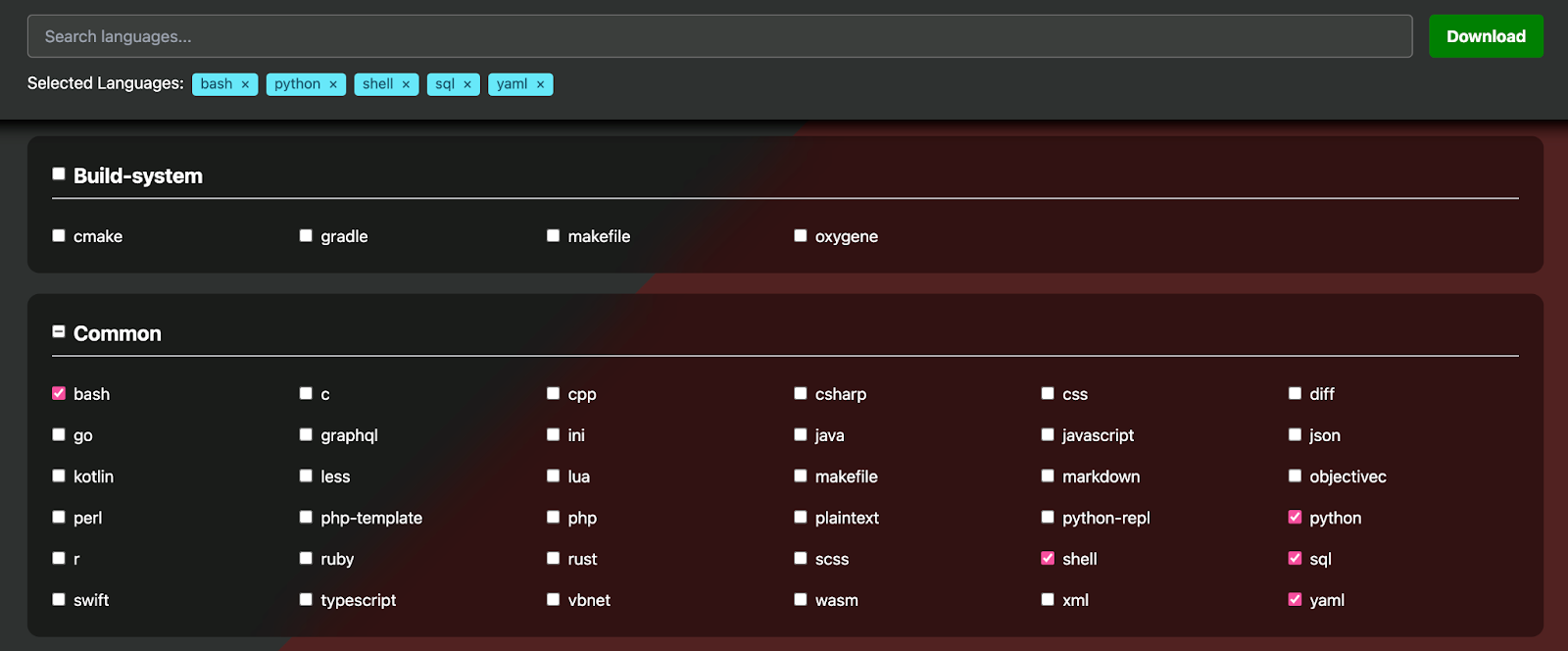 (저는 python, yaml, shell, bash, sql 를 선택했습니다.