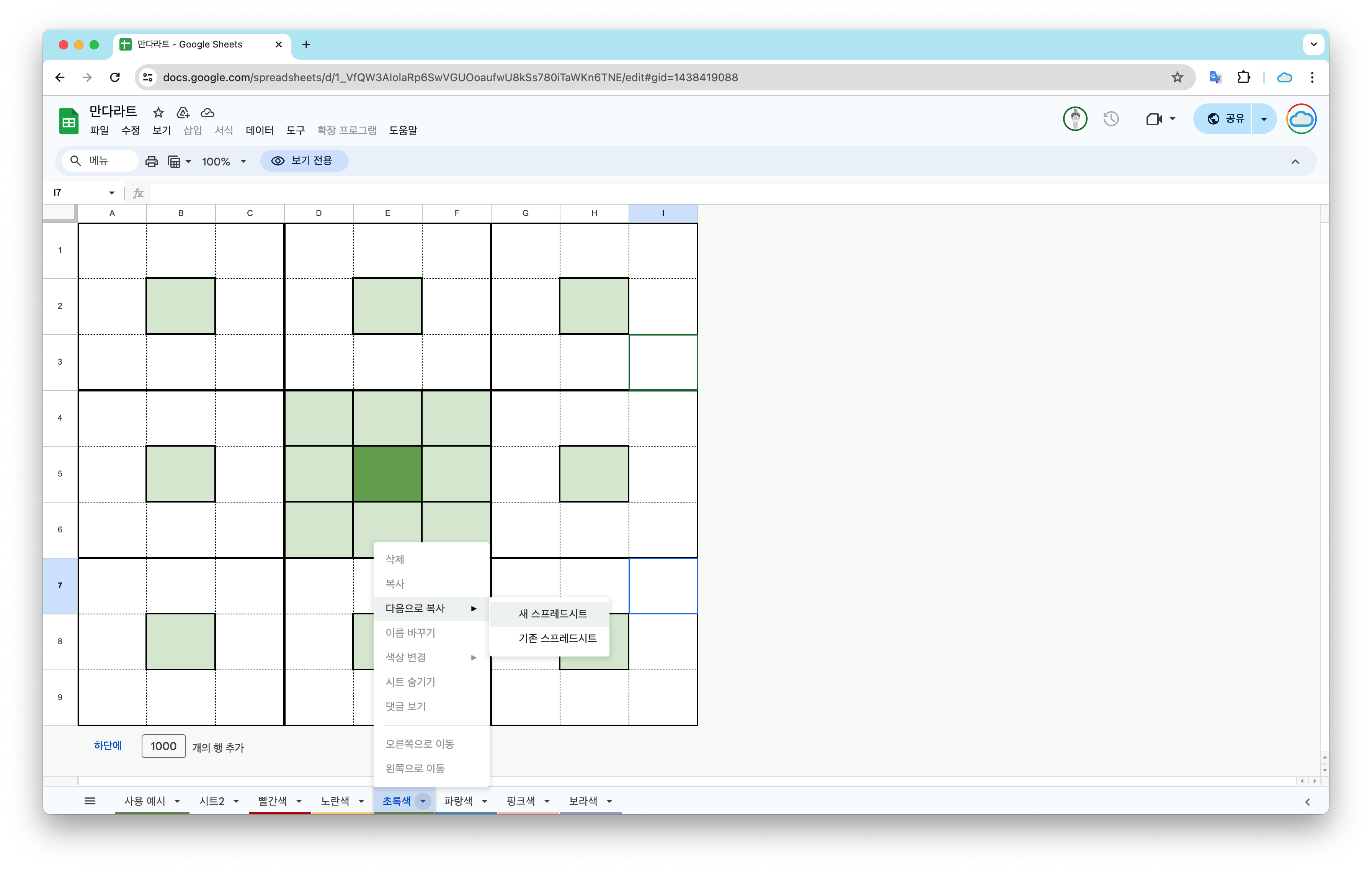 4. 원하는 색깔의 시트가 내 드라이브에 생성된 것을 확인할 수 있습니다.