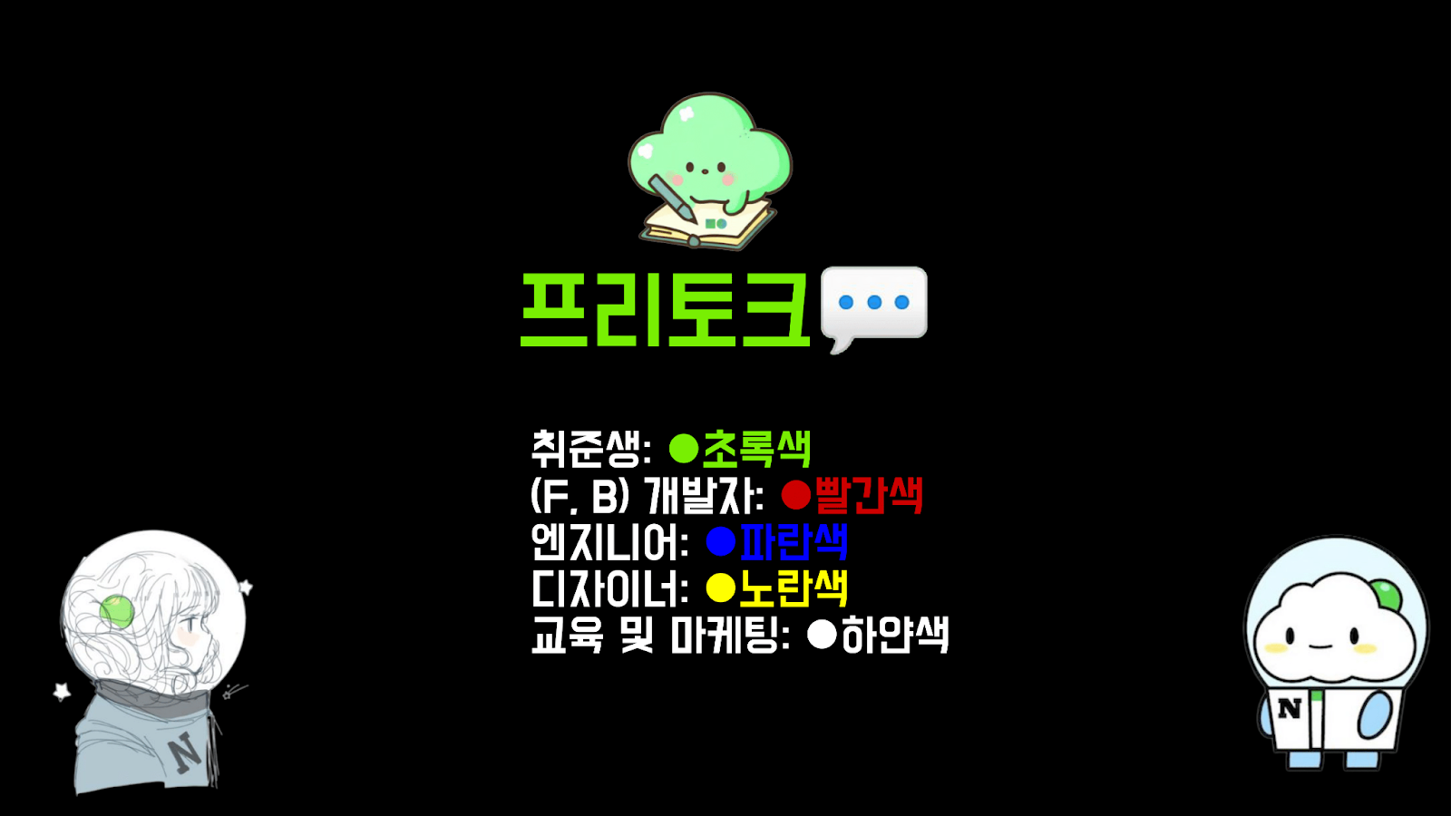 그럼에도 행사가 무사히 끝날 수 있었던 것은.. 선뜻 발표 맡겠다고 나서주시고, 데모 중 당황스러운 순간들이 있었음에도 웃는 얼굴로 현장에서 잘 대처해주신 윤서율 님, 처음부터 끝까지 적극적으로 지원과 응원을 아끼지 않으신 네이버클라우드 김상인 님, 행사 중 적극적인 참여와 "앞으로 이렇게 되었으면 좋겠다" 라는 의견과 아이디어로 키워드 토크 타임을 꽉꽉 채워준 참가자 분들과 주니어마스터분들 덕분이었습니다.