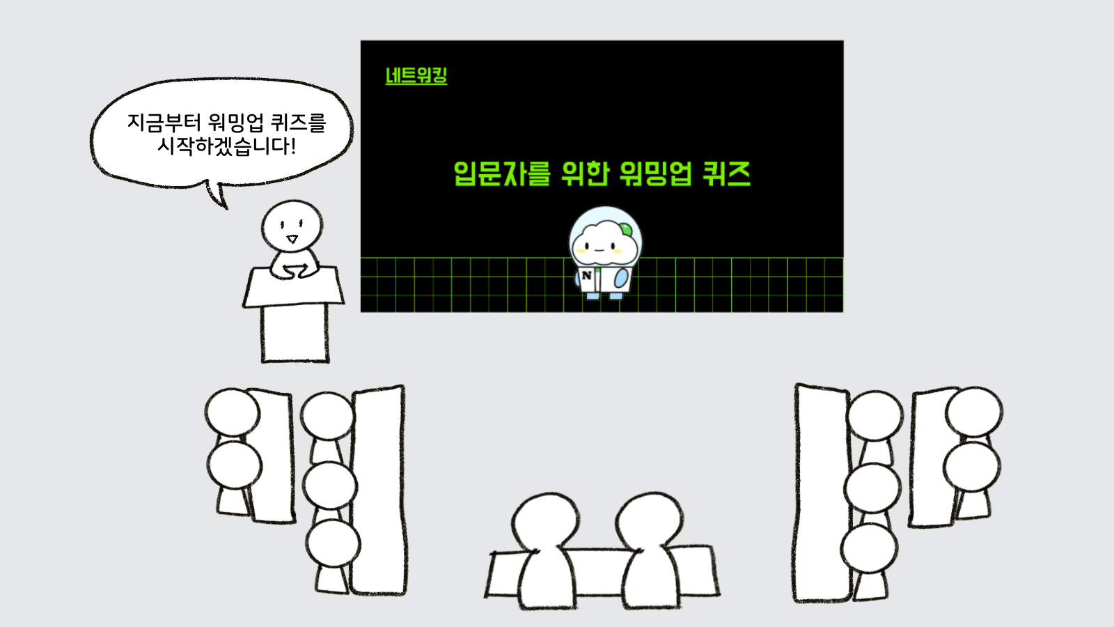 잠시 쉬는시간을 가지고, 본격적인 키워드 토크와 프리토크를 시작하기 전에, 분위기를 띄우는 목적으로 간단한 워밍업 퀴즈 시간을 만들어보았습니다.
