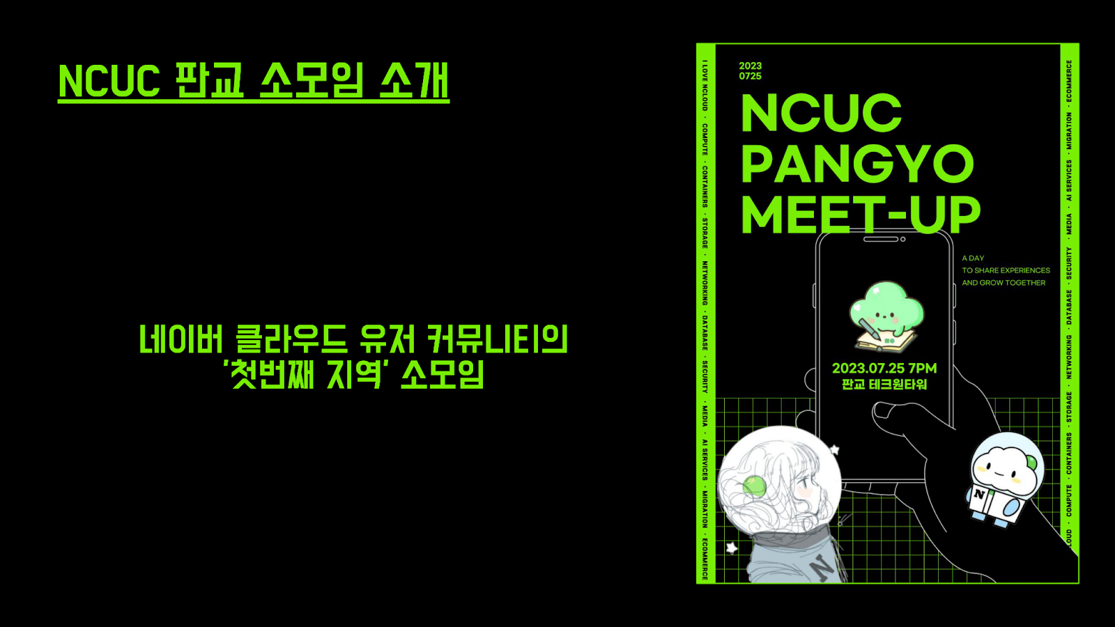 지난 7월 판교에서 네이버 클라우드의 첫 지역 소모임인 NCUC 판교 소모임 1회를 열게 되었습니다.