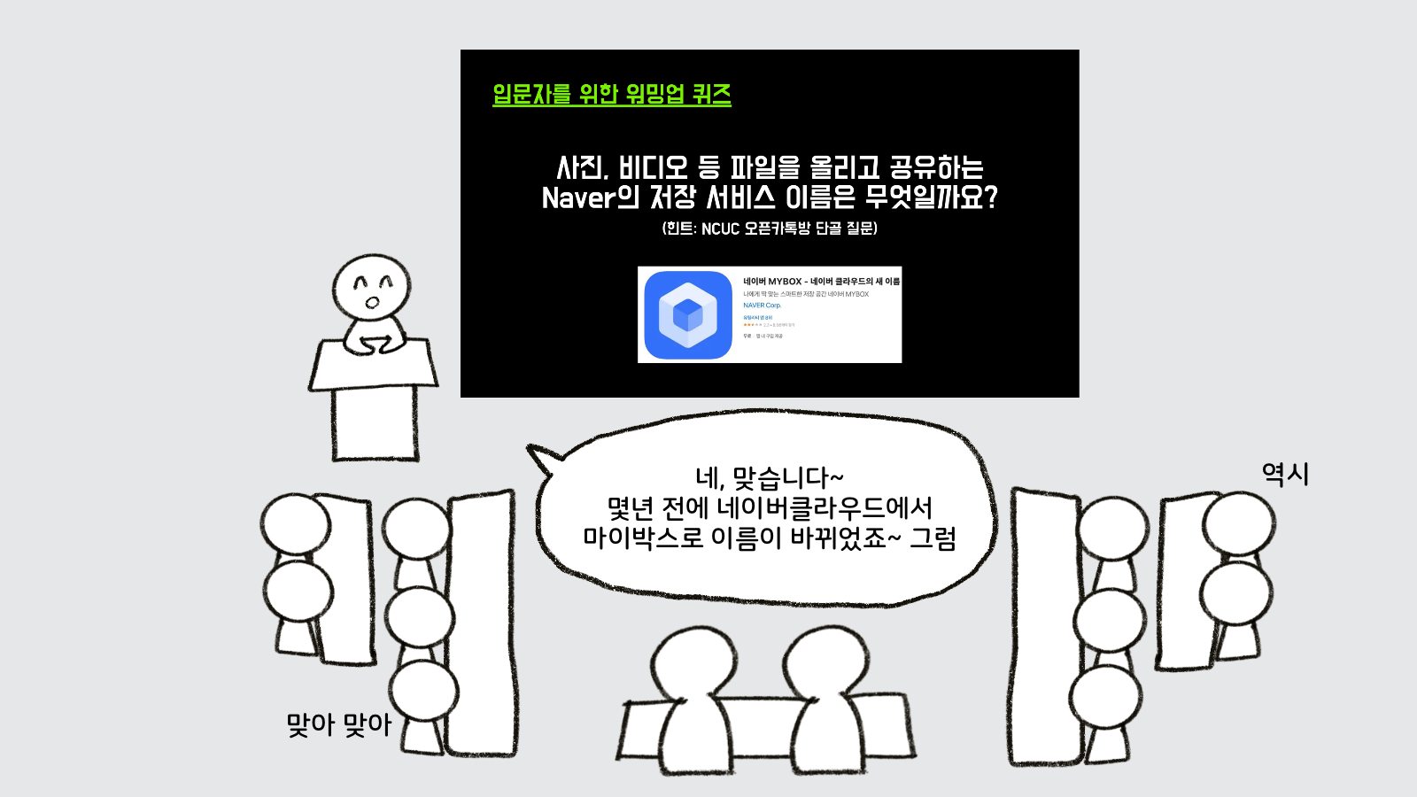 자기소개 중 "3년동안 네이버클라우드를 디테일하게 써왔다고 생각하고요. 앞으로도 판교 소모임 계속 참여할 겁니다." 라고 또박또박 말씀하신 참가자 분이 특별히 기억에 남았네요.