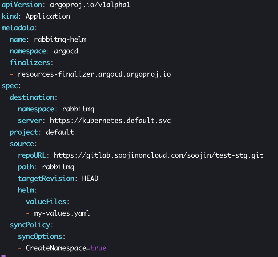 ArgoCD를 이용하여 RabbitMQ Helm 애플리케이션 배포하기
