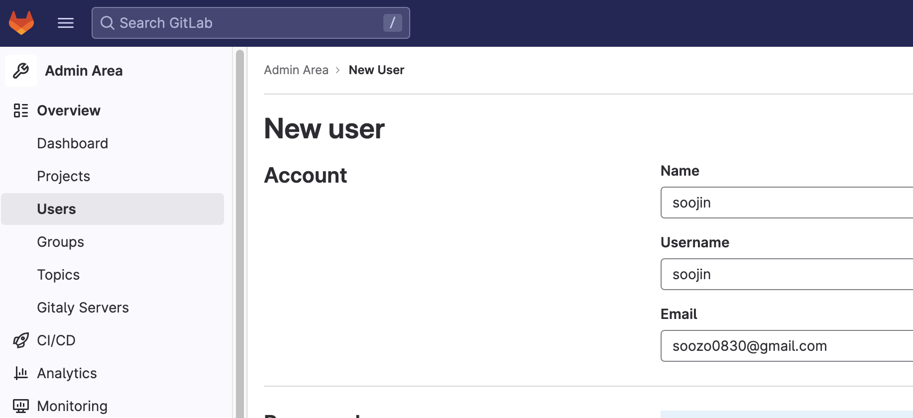 # 생성한 사용자 GitLab 계정으로 로그인하기