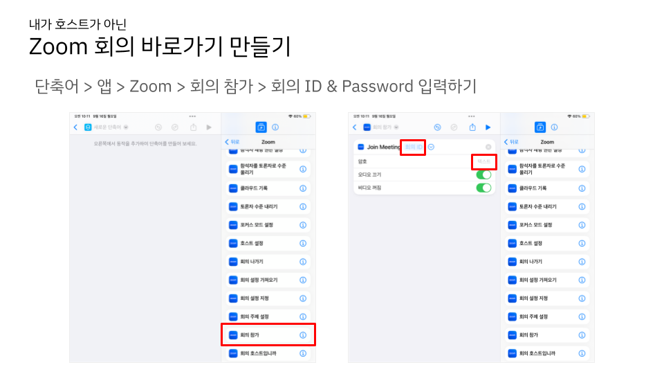 내가 호스트가 아닌 Zoom 회의에 바로가기 만들기(아이폰, 아이패드 기준)
