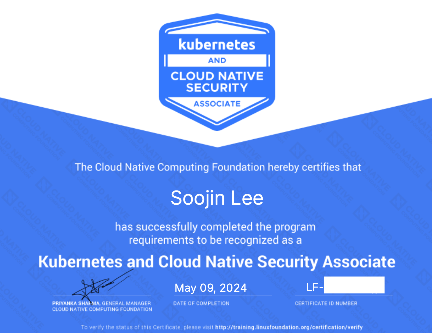 - KCSA공식 홈페이지: https://training.linuxfoundation.org/certification/kubernetes-and-cloud-native-security-associate-kcsa/