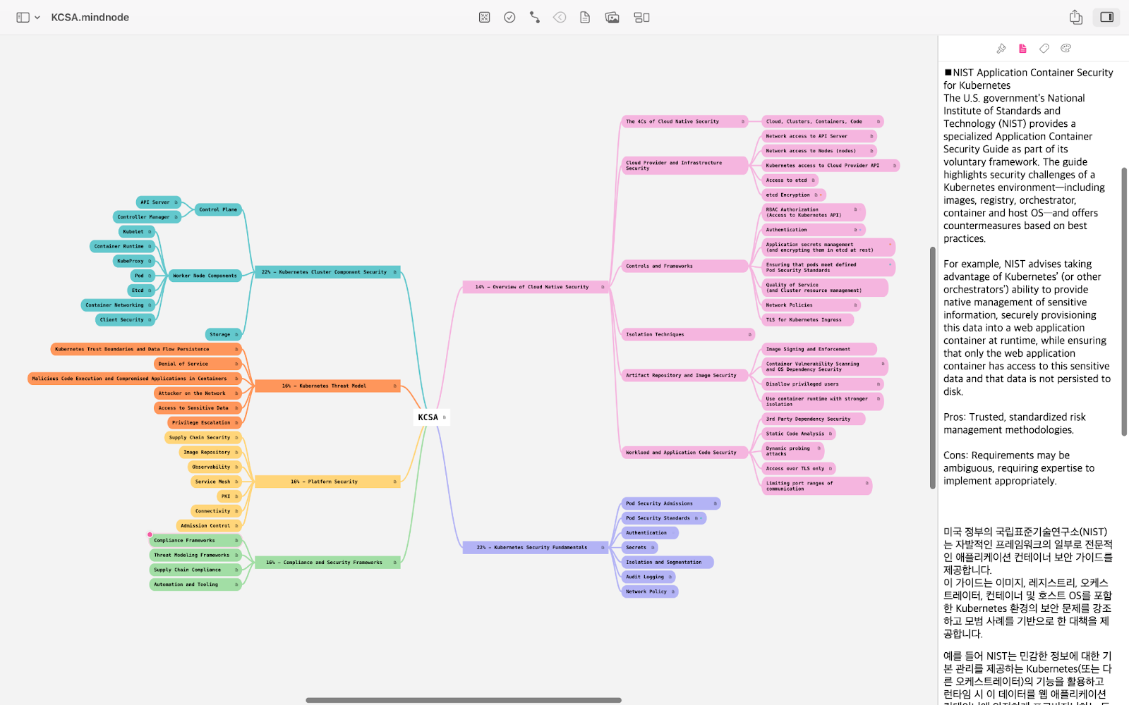 그리고 영어 관련해서도, 앞서 KCSA시험 본 분들이 "KCSA는 만만치 않을걸요"하고 예고를 하시길래 어느 정도 마음의 준비를 해두었습니다. (솔직히 이름에 Security들어가면 맘 편한게 없습니다) 자세한 설명은 마인드맵으로 대체합니다.