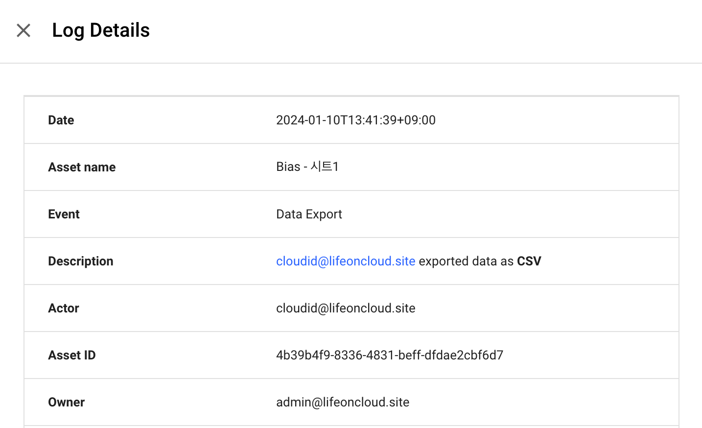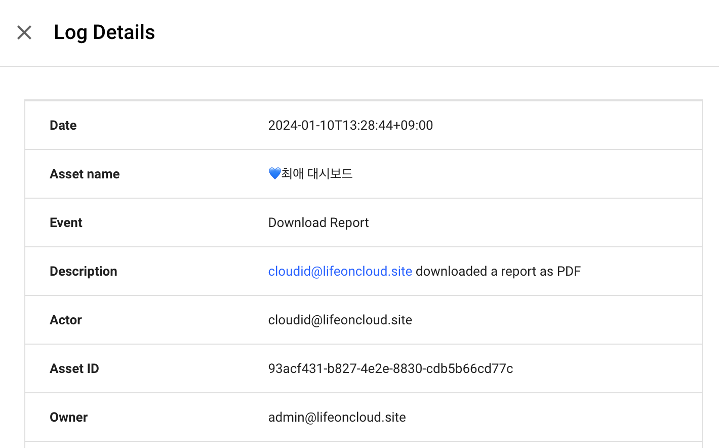 5. 보고서를 PDF 다운로드한 사용자 활동 로그를 확인할 수 있습니다.