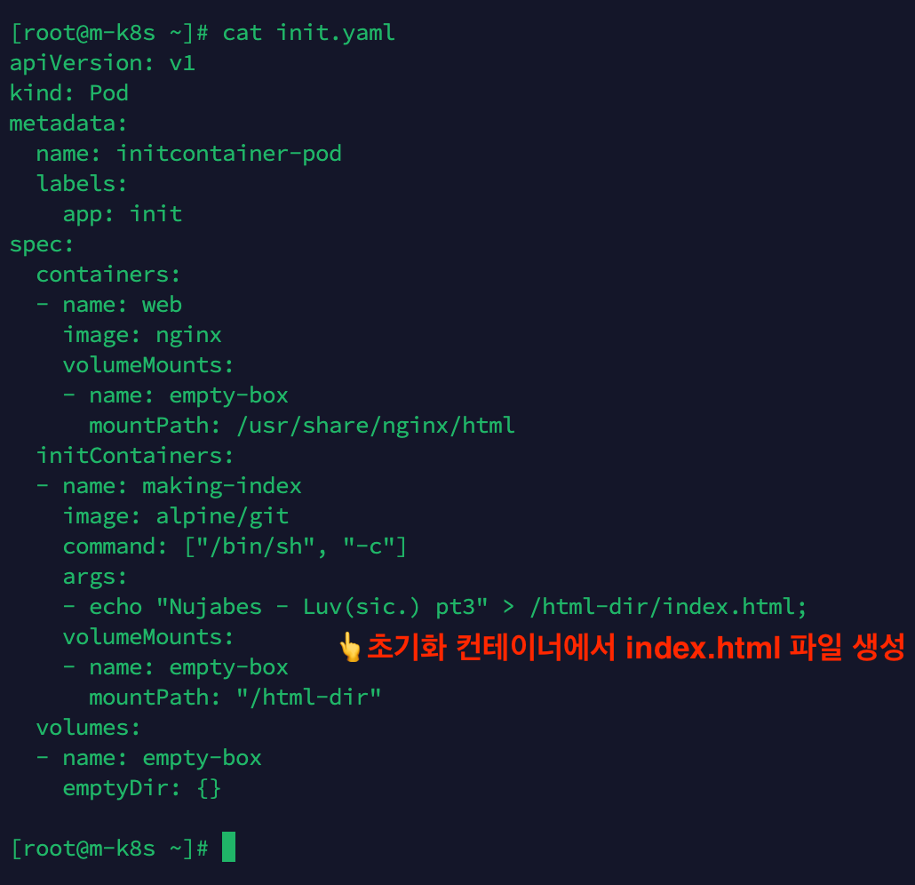 initContainers 예시 : 미리 index.html 파일 만들어두기