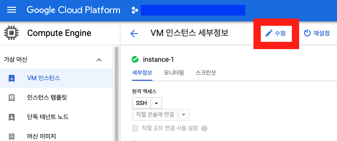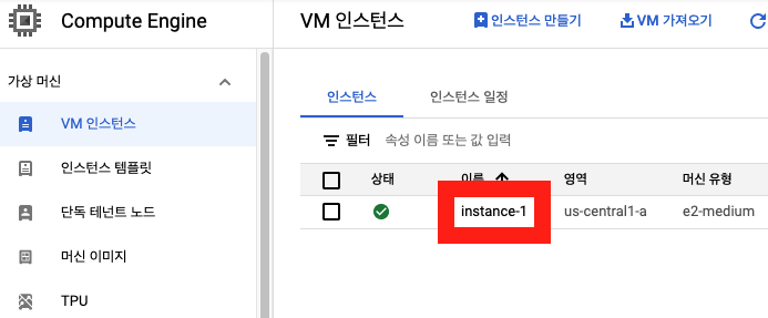 5. ssh로 접속하려는 VM인스턴스를 클릭합니다.